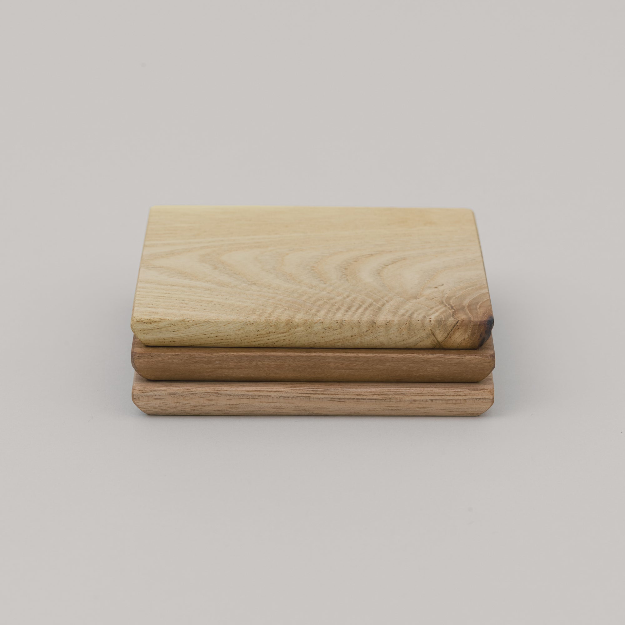 森の木々を余すところなく使いたいという思いから生まれた、木端を使ったプロダクトです。普段の暮らしに、森の木の風合いをさりげなく取り入れて。キハダ、エンジュ、オニグルミ3種のセット。それぞれの木目や色合いの違いを、身近に感じてください。