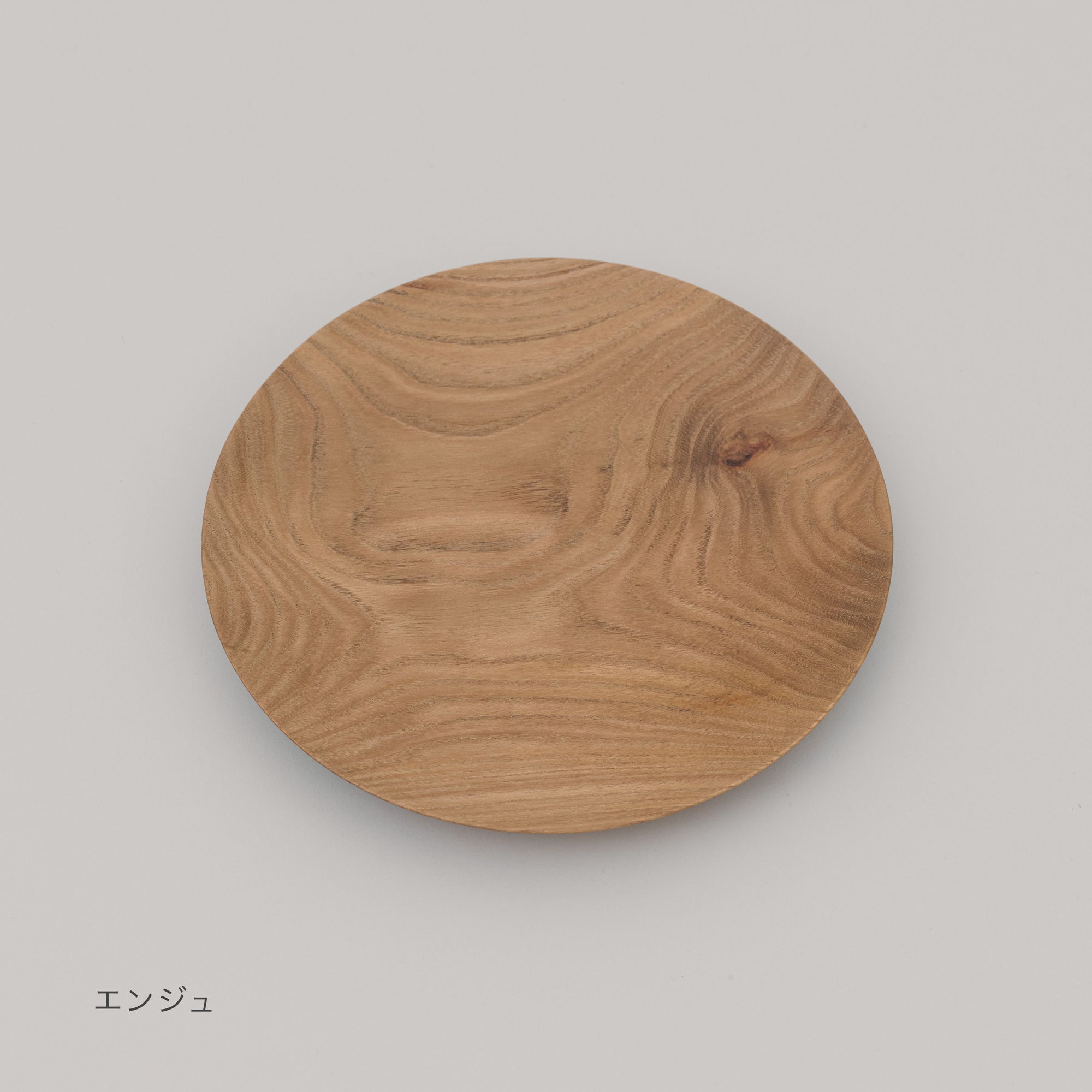 表情の違う3つの樹種キハダ、エンジュ、オニグルミによる平皿。サイズはS、M、Lをご用意しました。Sparkling Sakeに合わせた酒の肴を盛り、食卓で森の息吹を感じてください。